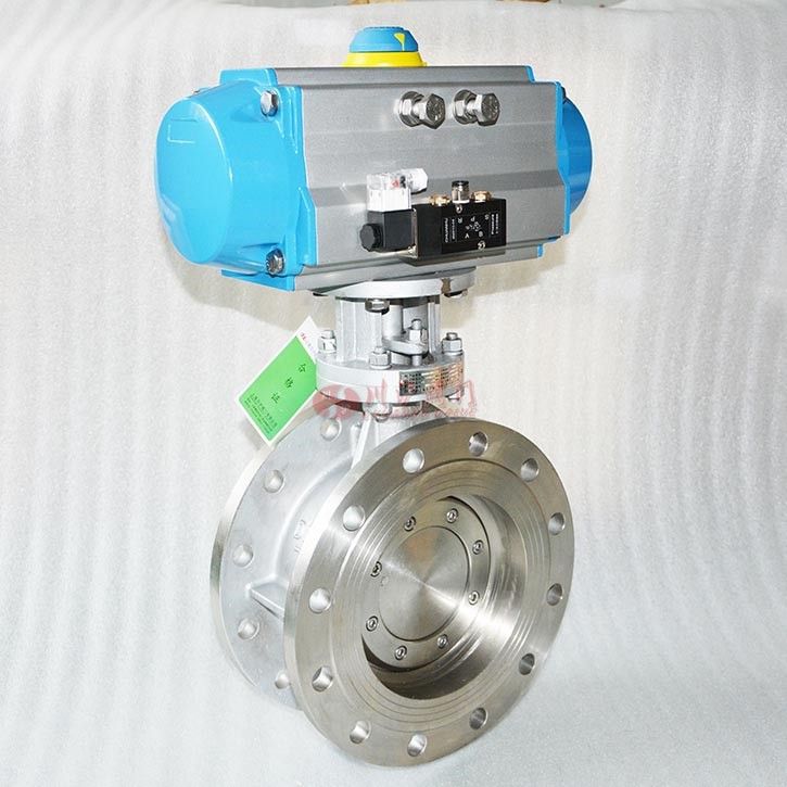 气动硬密封蝶阀(材质不锈钢、三偏心金属硬密封、法兰连接、配双作用或单作用气缸)